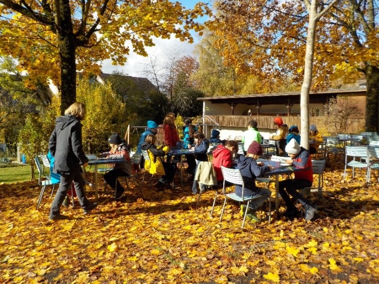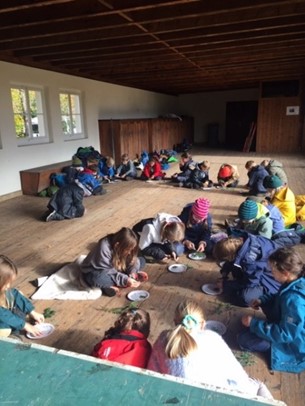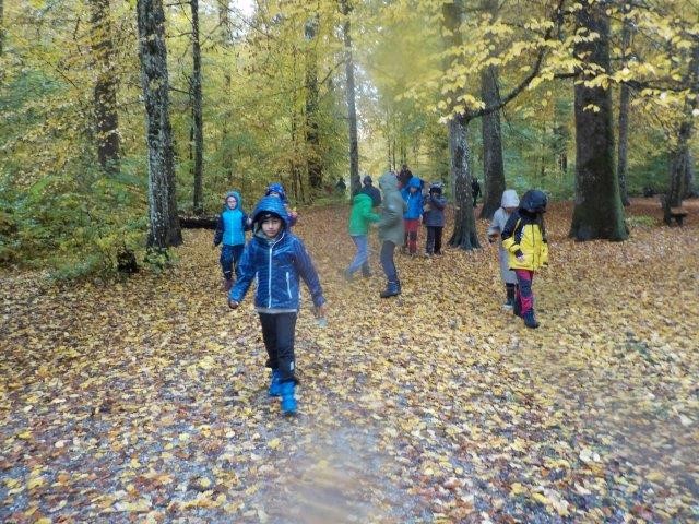 Vom 26. bis 30. Oktober sind die beiden dritten Klassen vom Schulhaus Freiestrasse in die Waldschule gezügelt. Obwohl wir alle am Montag bei strömendem Regen durch den Wald gestampft sind, waren die Kinder fröhlich und motiviert dabei. Ganz nach dem Motto: Es gibt kein schlechtes Wetter, nur schlechte Kleidung. Wir waren trotzdem froh, uns zwischendurch in den historischen Schulzimmern der Freiluftschule aufwärmen zu können. Das Lernen im und über den Wald mit allen Sinnen war für die Kinder anregend. Vieles konnte entdeckt und erforscht werden. Auch für gestalterische Arbeiten hat der prächtige Herbstwald viel hergegeben. Es sind Mandalas entstanden, Zwergenhüttli, Blätterschlangen nach Farben geordnet... Wir konnten sogar mit Tannennadeln ein Badesalz herstellen. Natürlich ist das Spielen und die Bewegung an der frischen Luft nicht zu kurz gekommen, so konnten die Kinder sowie die Lehrerinnen am Abend jeweils sehr gut schlafen. Es war toll im Wald!