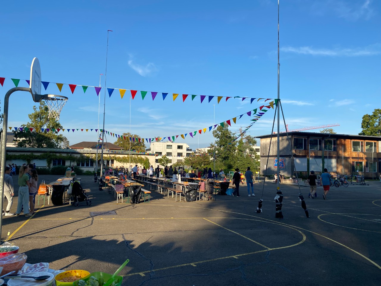 Die Arbeitsgruppe "Willkommensfest Schule In der Ey" organisiert jedes Jahr anfangs September ein Fest für die ganze Schule. Es soll eine wiederkehrende Begrüssung für die neuen KindergärtnerInnen, SchülerInnen, Eltern und neuen LehrerInnen sein. Die Eltern bringen internationale Spezialitäten mit und lassen so reichhaltige Buffets entstehen. Die Kinder können sich an tollen Spielposten und einer Disco vergnügen! Es ist ein Fest des Kennenlernens und des gemütlichen Beisammenseins.