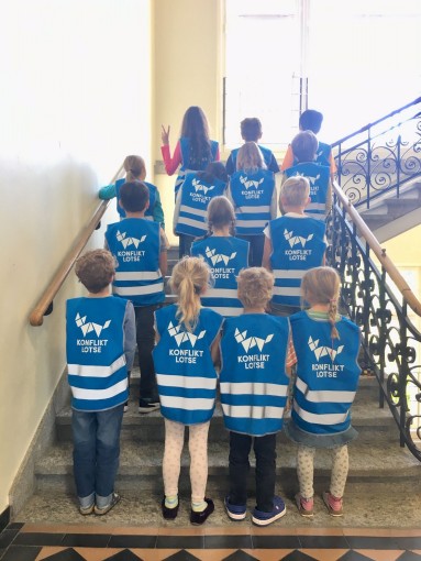 In der Tagesschule Kartaus-Münchhalde haben wir in jedem Schulhaus Konfliktlotsen, von der 1.–6. Klasse je ein Mädchen und ein Junge. Man erkennt sie auf dem Pausenplatz an ihren blauen "Konfliktlotsen-Westen". Ihr Ziel ist es, in Situationen wie Meinungsverschiedenheiten oder Streit während der Pausen oder im Unterricht zu schlichten. Konfliktlotsen sind unparteiisch, unterstehen der Schweigepflicht und sprechen keine Sanktionen aus.