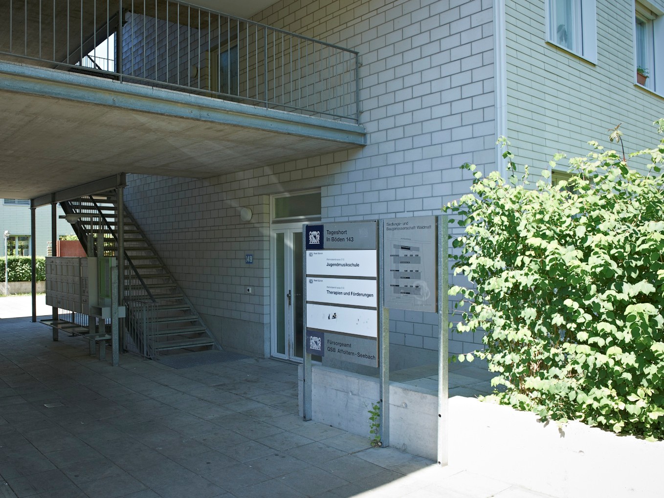 Vier Horte der Schule Riedenhalden liegen nicht auf dem Schulhausareal, sind aber im Quartier leicht uns sicher in 5-10 Minuten erreichbar. Der MAH Riedenhalden befindet im Pavillon auf dem Schulgelände.