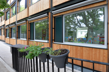 Dieser Kindergarten befindet sich im Züri-Modular Pavillon 3 auf dem Schulareal.