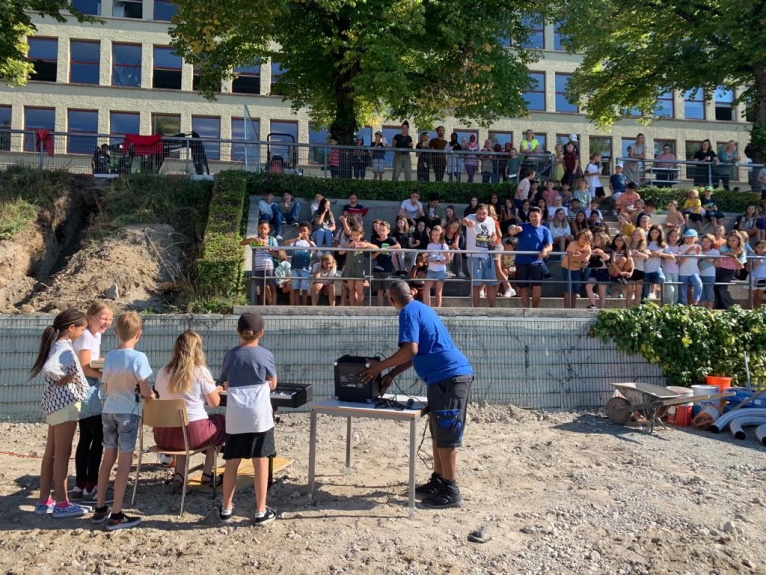 Am Kodextag haben die Schüler*innen Wünsche für das gemeinsame Zusammenleben schriftlich festgehalten. Diese Zeitzeugenberichte haben wir in einer Kiste gut verpackt und zusammen mit unserem KODEX Lied unter dem neuen Pavillon einbetoniert.