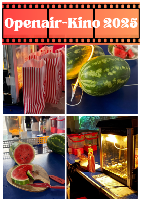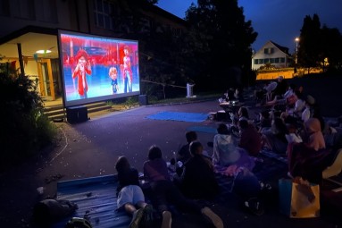 Das diesjährige Openair fand am 5. September 2025 bei relativ warmem und trockenem Wetter statt. Zahlreiche 5. und 6. Klässler*innen brachten Kissen und Stühle von zu Hause mit, um es sich beim Film gemütlich zu machen. Der Elternrat bot salziges und süsses Popcorn an, und als Erfrischung wurden grosse Wassermelonen angeschnitten.