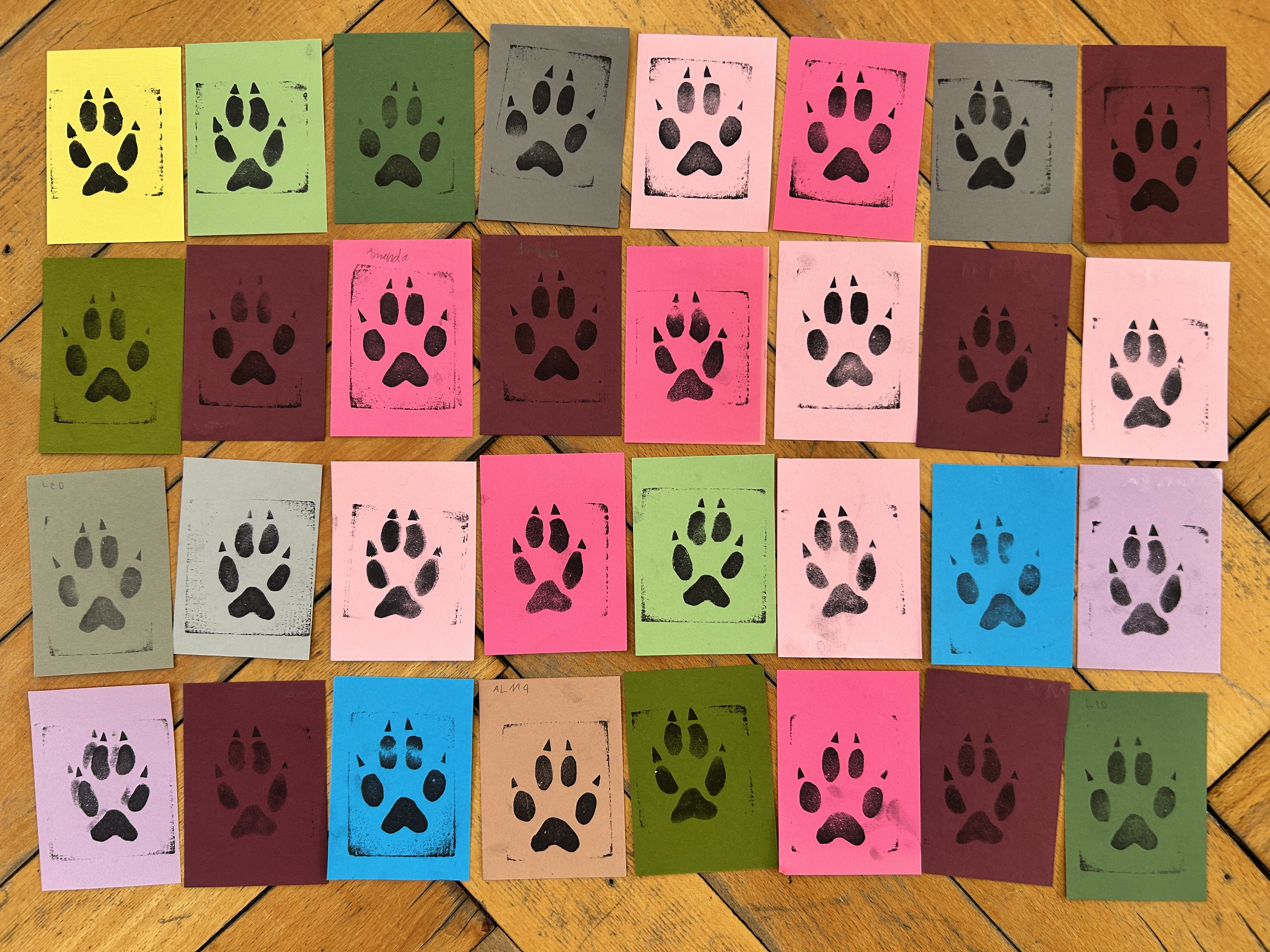 Unser erstes Tier war der Fuchs. In den letzten Wochen haben wir gelernt, wie Füchse zu schleichen, uns so zu verstecken, dass man uns kaum noch sieht, und ganz aufmerksam zuzuhören. Die Kinder sind mit grosser Freude draussen in der Natur unterwegs. Im Wald beobachten wir zudem verschiedene Tierspuren und haben sogar Abdrücke von Wildschweinen entdeckt.