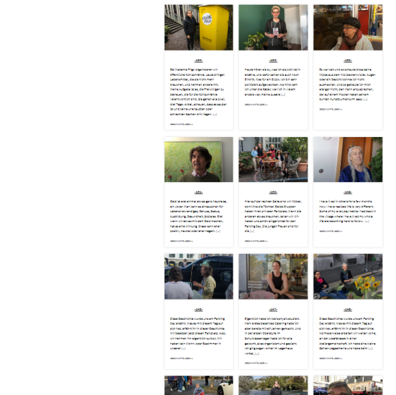 «Züri Stories for Future» sammelt Geschichten von Menschen, die Zürich nachhaltig gestalten. Bisher wurden Projekte wie die Nachhaltigkeitswoche der Zürcher Universitäten, der Parking Day und das Ernährungsforum als Geschichten festgehalten, darunter auch 9 «Für Züri»-Projekte. Einige wurden bei Erzählevents wie dem Klimatag, im Klimalabor des Magazins Republik oder an Anlässen von Umweltorganisationen präsentiert. Zudem wurden die Kolumne «Inspiring Stories» mit Tsüri und der Universität Zürich, die «stories for future»-Zeitung und eine Webseite veröffentlicht. Rund 3000 Personen haben vom Projekt profitiert, das aufzeigt, wie jede*r Einzele*r zu einer nachhaltigen Transformation beitragen kann.