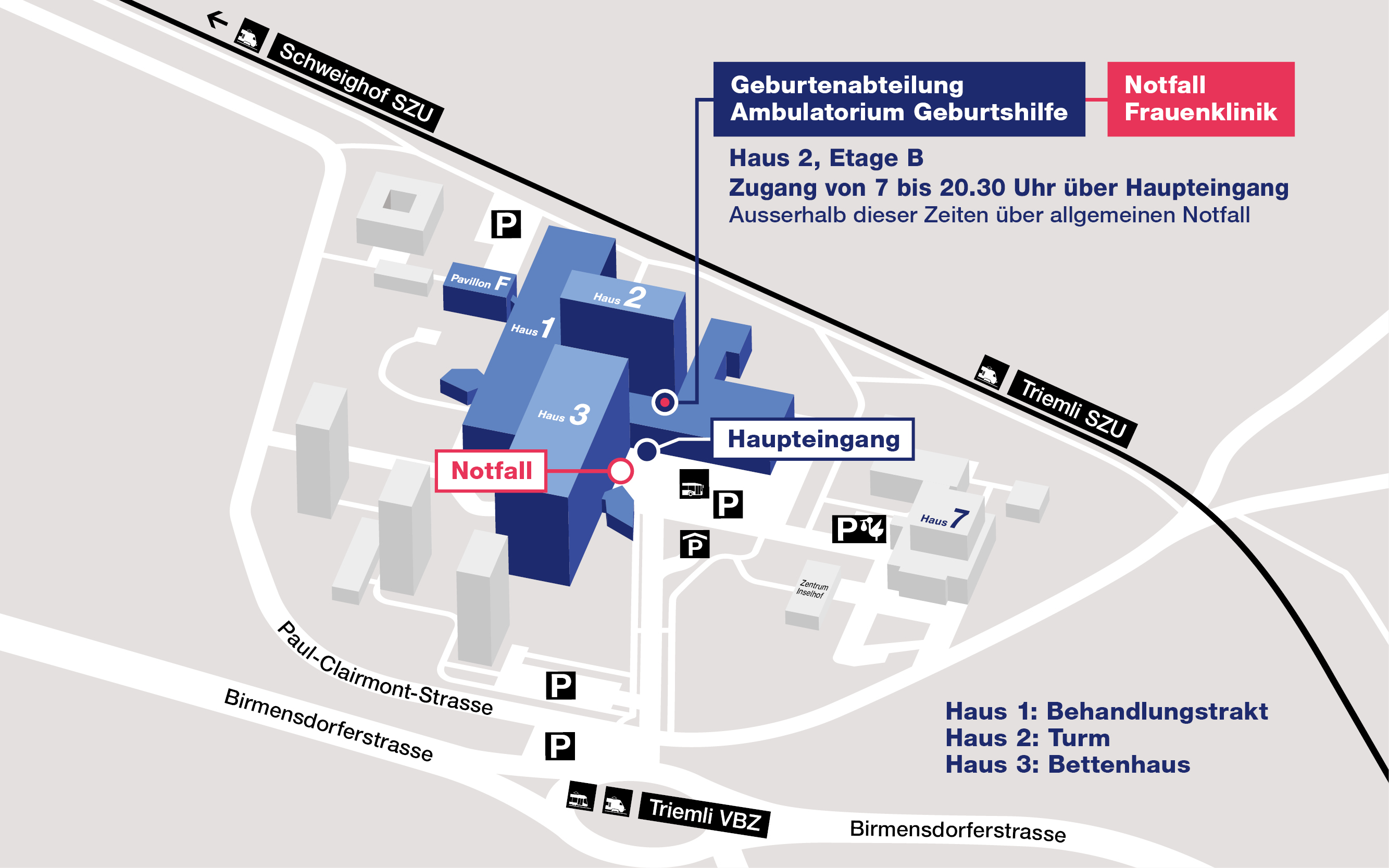 Ein Umfeld, das Sicherheit und Vertrauen schafft: Im Stadtspital Zürich Triemli begleiten Sie erfahrene Hebammen, Geburtshelfer*innen und Pflegefachpersonen kompetent durch die Schwangerschaft, Geburt und das Wochenbett – individuell und nah von der Erstuntersuchung bis zur Nachsorge.