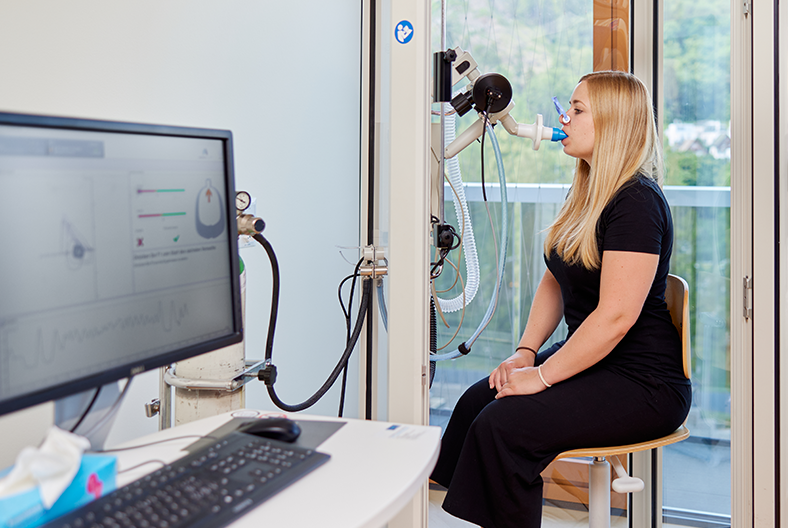 Viele Symptome von Lungen- oder Kreislauferkrankungen treten erst unter Belastung auf. Deshalb führen wir standardisierte Leistungstests wie Fahrrad- oder Laufband-Spiroergometrie durch. So können wir eine Leistungseinschränkung objektiv beurteilen.