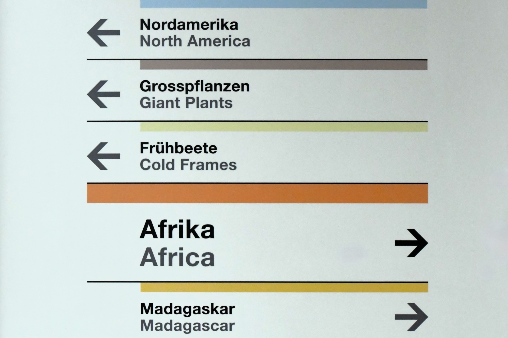 Jedes Gewächshaus bietet mehrsprachig (in Deutsch, Englisch, Französisch und Italienisch) Informationen in Form eines Grossbuches an. Hier holen Sie Wissen zum Lebensraum der präsentierten Grossregion, den dort vertretenen Pflanzenfamilien sowie ökologische und andere spannende Aspekten rund um die im Schaubereich gezeigten Pflanzen ab. Besonders nachgefragte Pflanzenarten sind mit einer Tafel und vertiefenden Informationen ausgezeichnet. Ergänzend sind im Holzsukkulentenhaus Informationen zu Schädlingen und Krankheiten auf Tafeln zu finden.