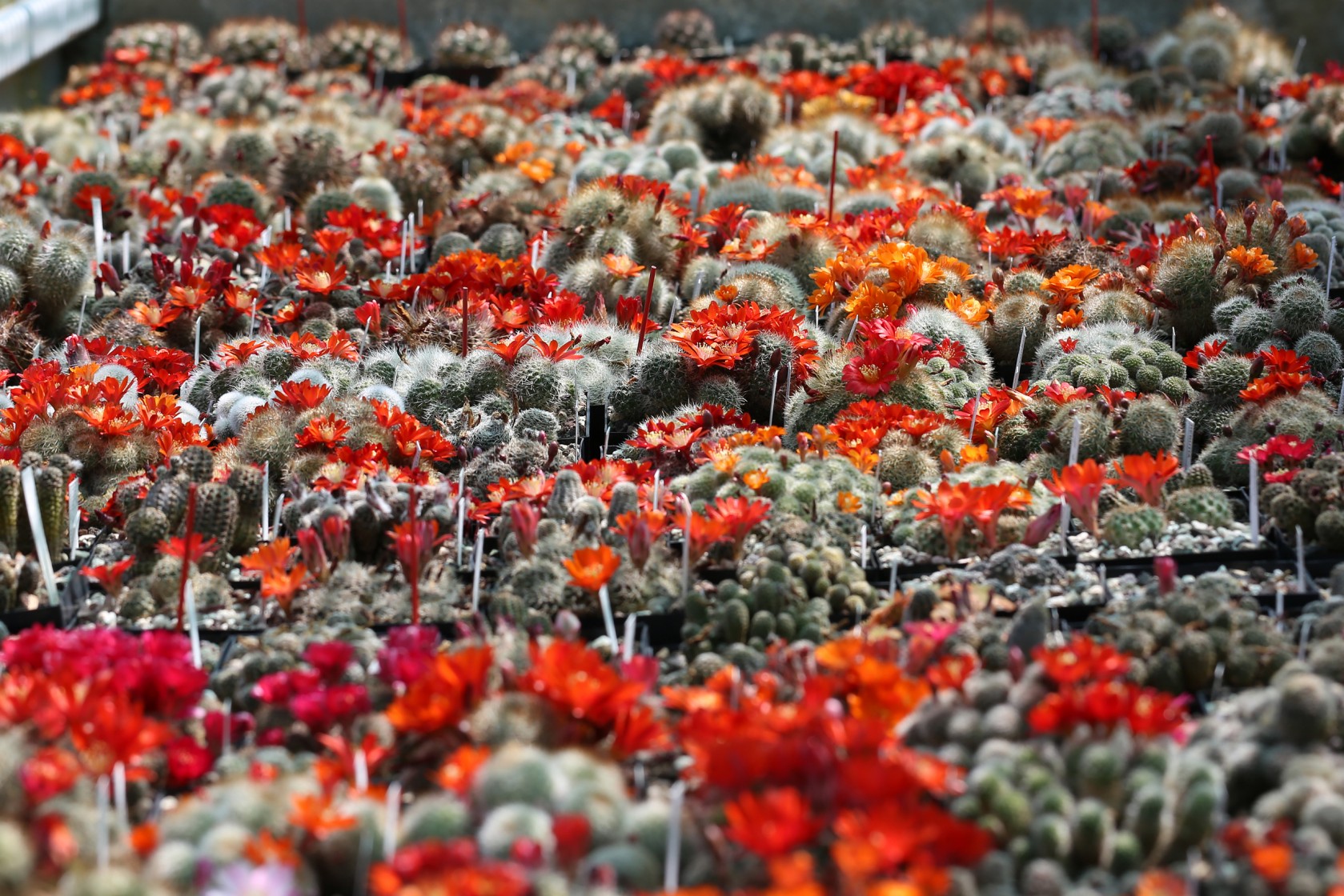Im Gegensatz zum Weihnachtskaktus und anderen «Kurztagpflanzen» sind die Frühlingsblüher unter den Sukkulenten sogenannte Langtagpflanzen. Auch sie nutzen die Dauer des Tageslichts als Zeitgeber. Nur sind es nun die ab Januar länger werdenden Tage, welche die Blütenbildung auslösen. Die «Hochblüte» der Kakteen und anderer Sukkulentenarten liegt im April und Mai. Dabei kann die Blütezeit von Jahr zu Jahr etwas variieren – je sonniger und wärmer der Frühling, desto früher beginnen die Kakteen mit der Blütenbildung. Besonders beeindruckend sind die Kugelkakteen (Rebutia), die zu dieser Zeit in den Frühbeetkästen um die Wette blühen!